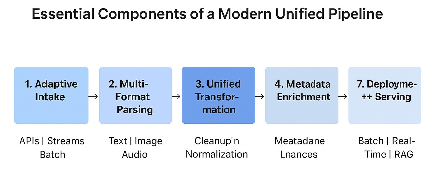 3. Единая логика преобразования : набор общих правил для нормализации, очистки и формирования, который предотвращает расхождения между модальностями и стабилизирует поведение модели.